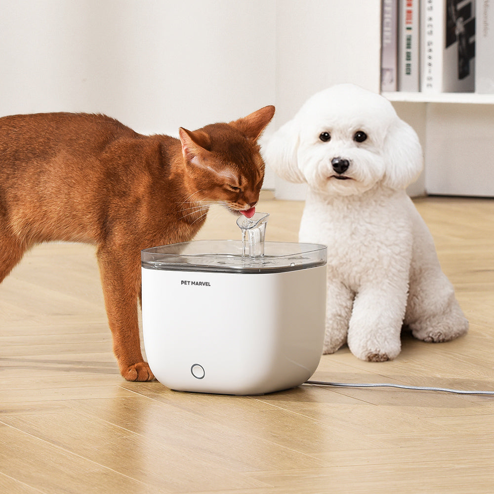 That’s why we offer an automatic pet water fountain that keeps water fresh, supports your pet’s health, and stays out of your way with its quiet operation and compact 19x14